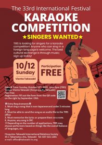 Inquiries: Please contact TIRS either via email or by phone at 027-321-1201; office@takasaki-irs.org (English or Japanese is OK)